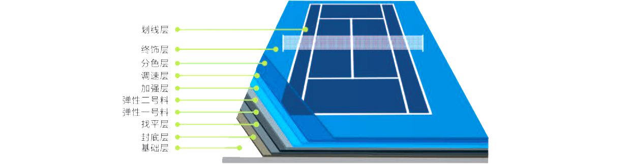 1、由100%的丙烯酸类材料和特制的聚合橡胶颗粒组成,具有优良的韧性,并可以遮盖因基础产生的细小裂缝;2、具有极佳的减震性能,减轻打球者脚部和腿部受到的震荡(尤其适合非专业选手及休闲娱乐);3、具有极强的抗紫外线性能,室内、室外场地均可使用;4、适于各种气候条件,使用寿命长;5、可提供多种弹性等级供选择;6、维护保养便利;7、颜色多样,色泽纯正,持久不褪;